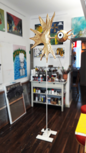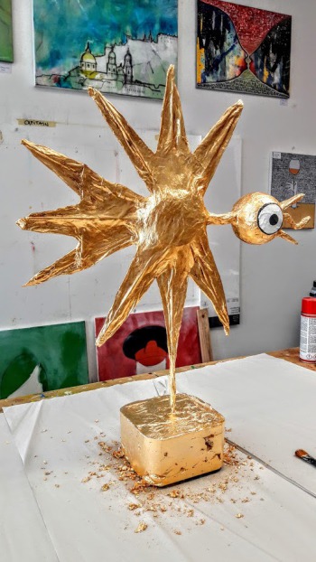 Goldybird N°2/ Skulptur Cartapesta Schlagmetall Kupfer / 250 cm Höhe mit Hohlrohr und Stahlsockel /2019/€4500