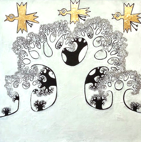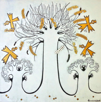 Goldybird N°3/ Acryl Mischtechnik auf Leinwand / 100 x 100/ 2015/€2000