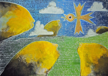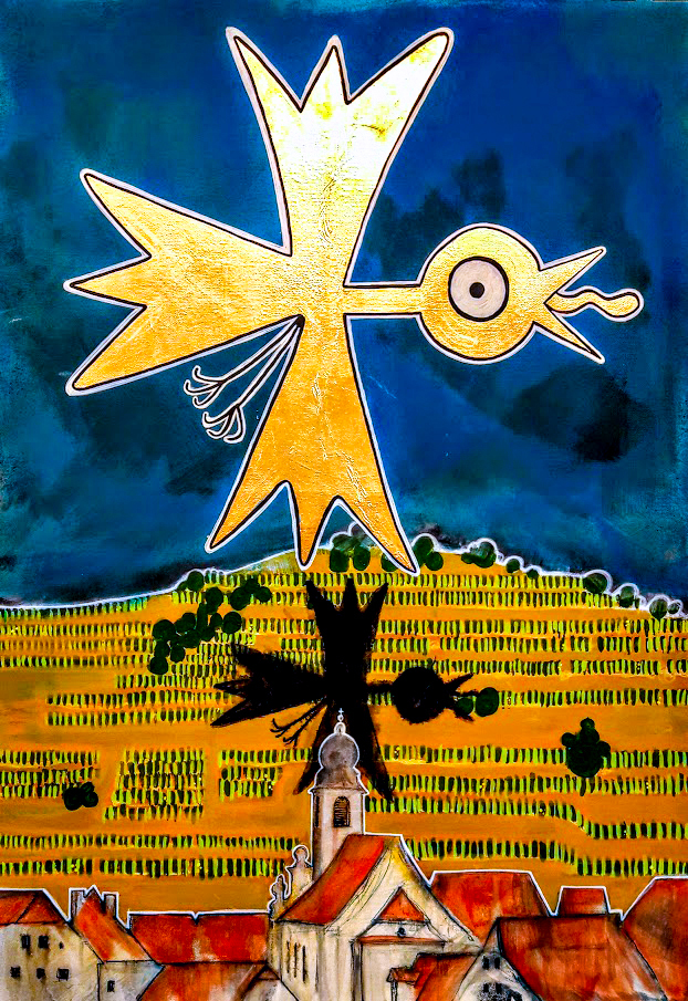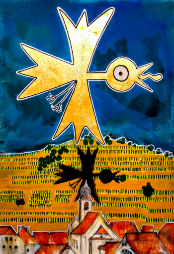 Goldybird über Wösendorf/ Acryl Mischtechnik auf Leinwand / 70 x 100/ 2016/