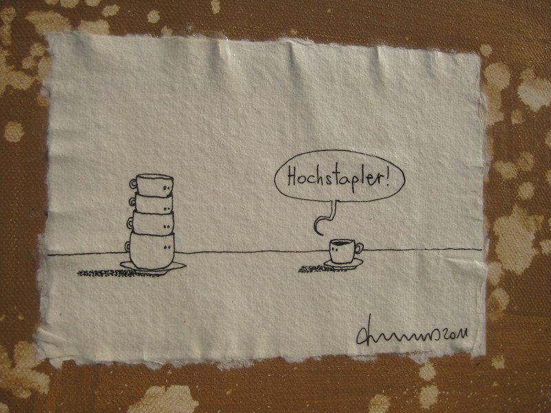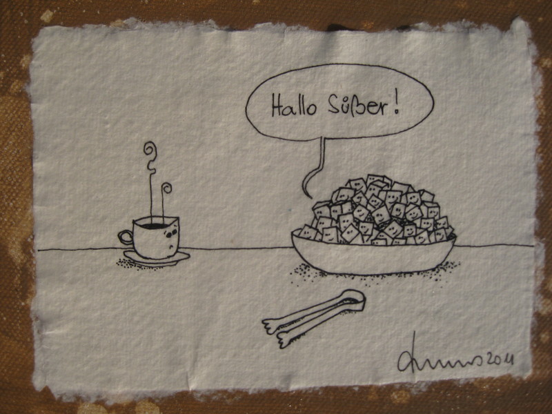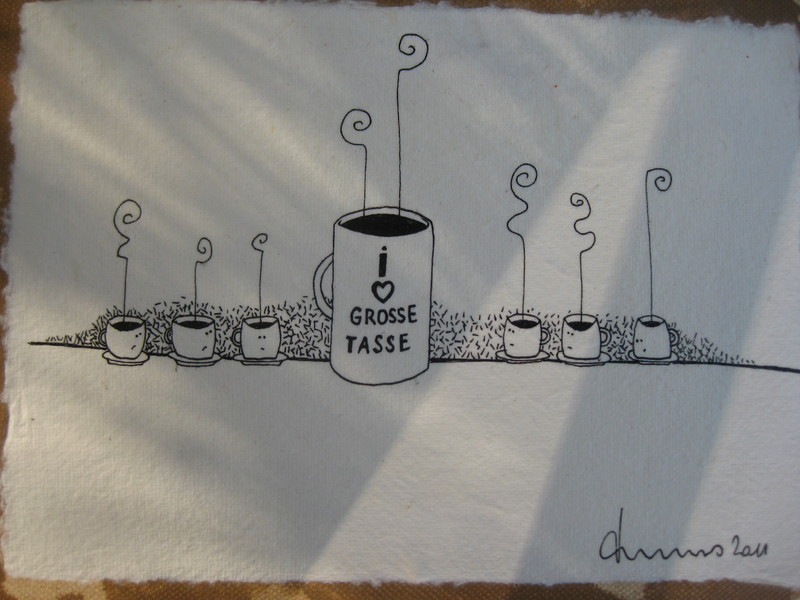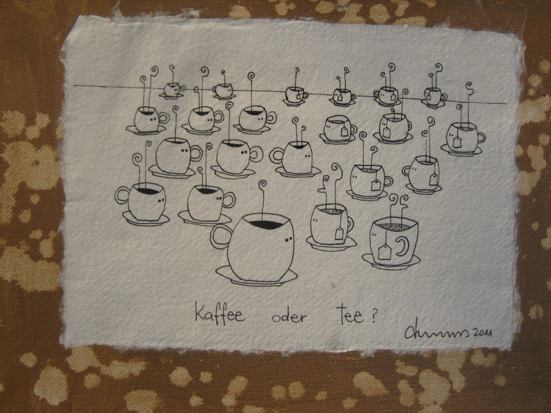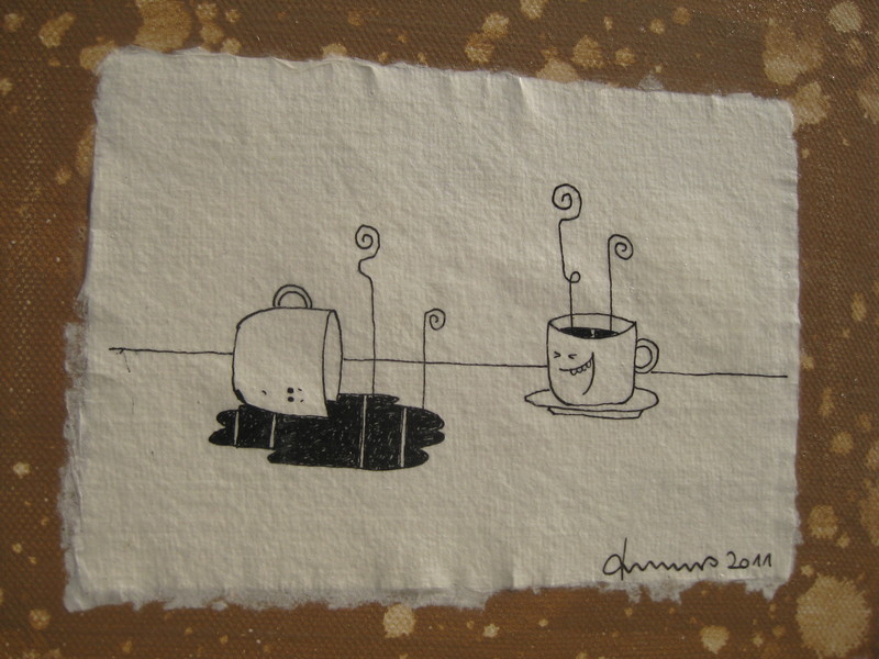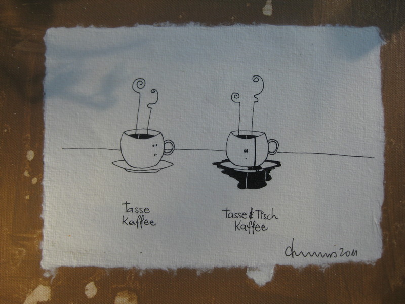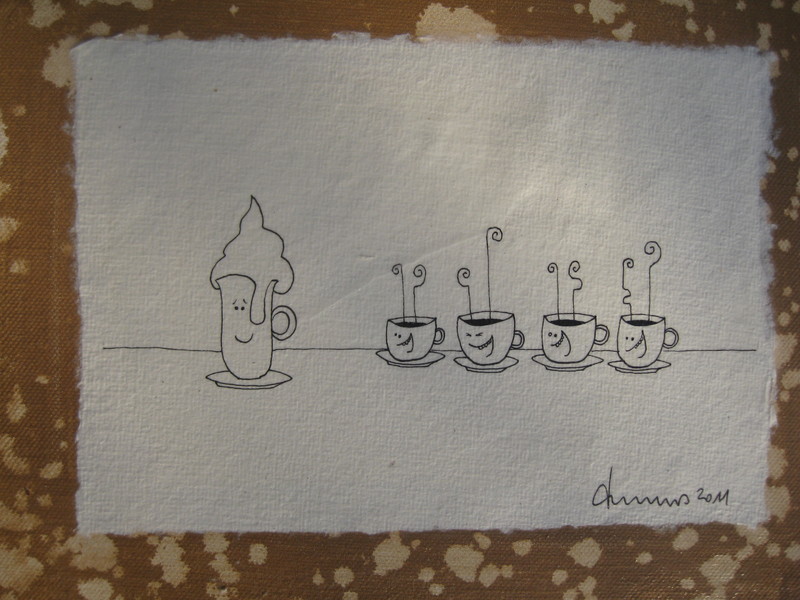 Die Kaffeekinder sind eine Hommage an die Kaffeekultur in unserer Zeit. Ein Kaffeesieder ist heutzutage ein Barista und jeder hat bessere Kaffeekenntnisse als der Strauch selbst. Kaffee kauft man in Alubechern bei Boutiquen. Diese Firmen verkaufen Pizzen, Katzenfutter und Kaffee. Prost Mahlzeit und Miau