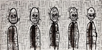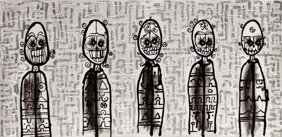 Fünf Weingeister /40 x 80/ Acryl Mischtechnik auf Leinwand 2015 /