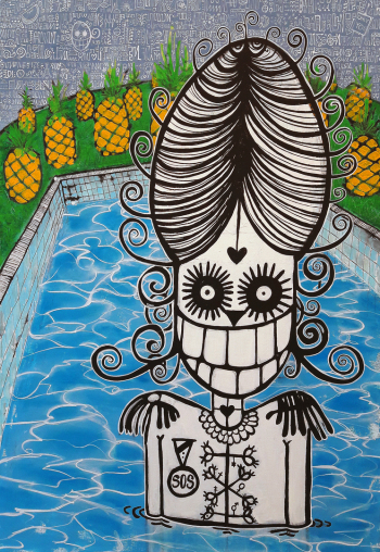 Ananas am Pool/100 x 70/ Acryl Mischtechnik auf Leinwand 2019 /