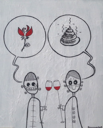 Zwei Weinkenner/50 x 40/ Acryl Mischtechnik auf Leinwand 2015 /