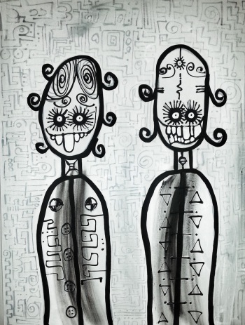 Zwei Weingeister/60 x 80/ Acryl Mischtechnik auf Leinwand 2015 /