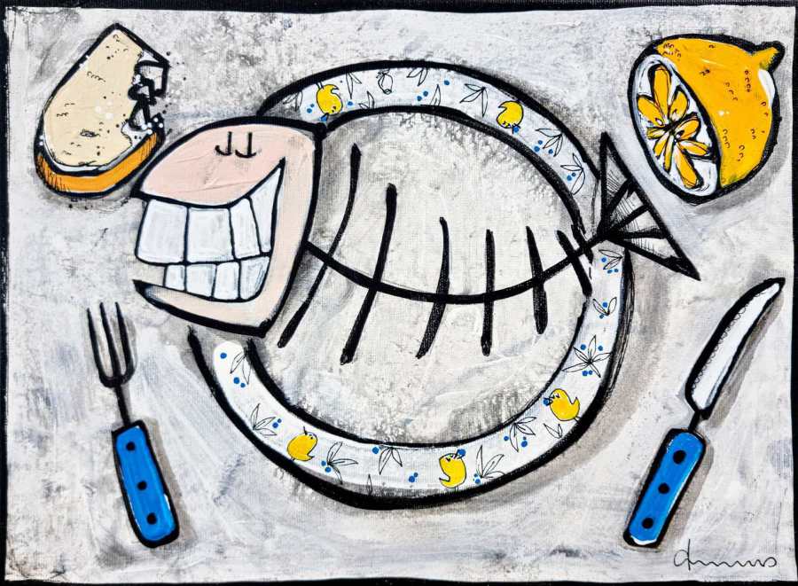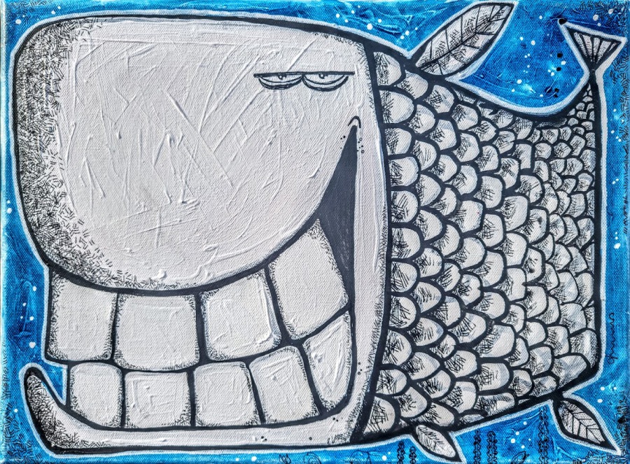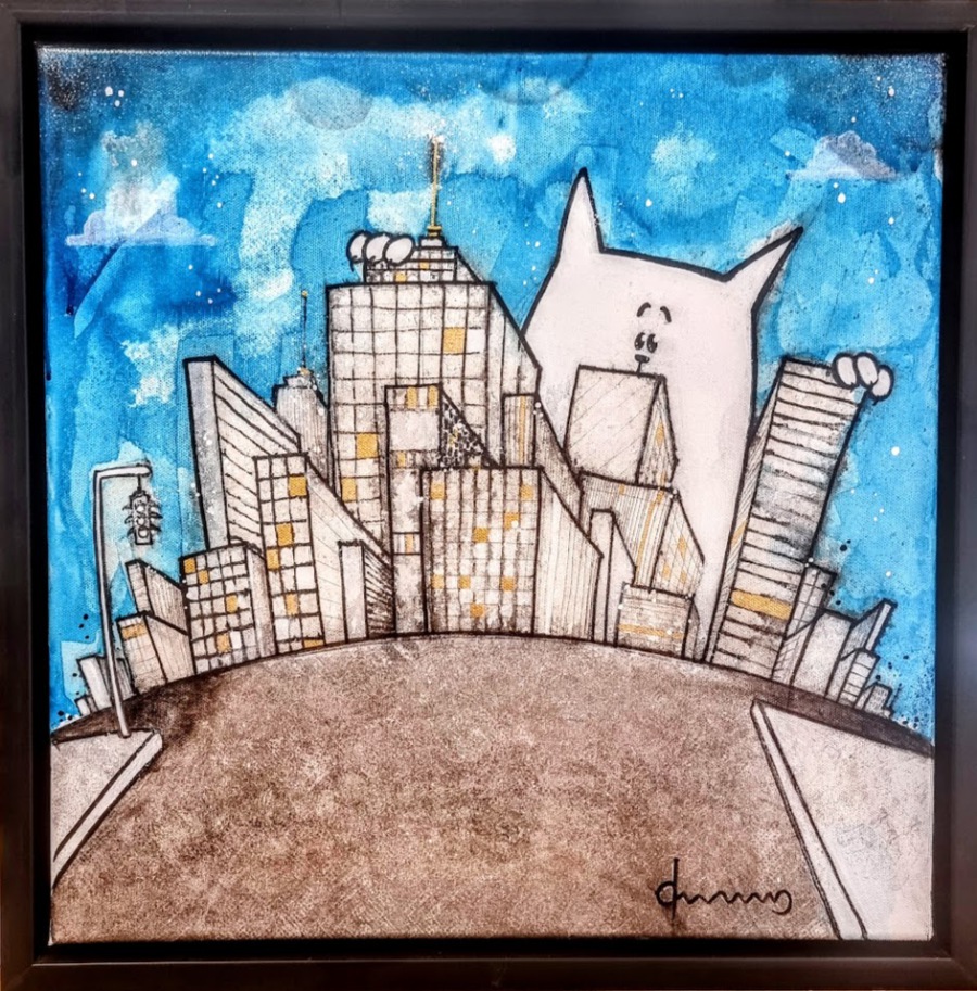 Kratzkatz am Strand/ Acryl auf Leinwand / 40 x 50/ 2022/ € 900